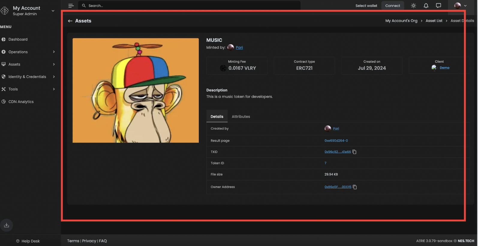 Review Details: Examine the detailed information provided for the asset. This includes metadata, transaction history, and ownership details.