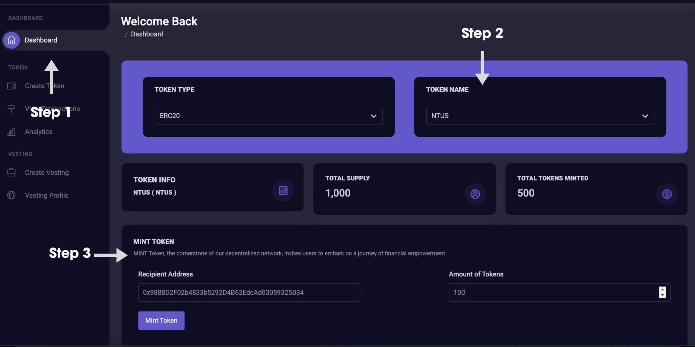 - Amount to Mint: Enter the number of tokens you wish to create and add to the supply. Ensure that this amount aligns with your project's tokenomics and supply management strategy.